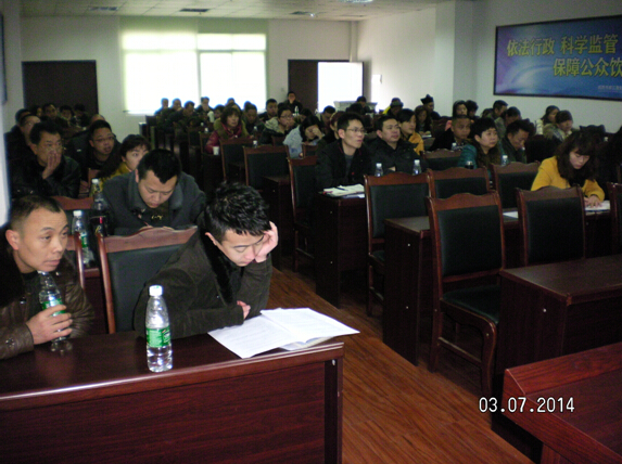 最后都江堰市食藥局例舉出不合格企業(yè),同時播放了一個在成都市違規(guī)生產(chǎn)泡菜的曝光視頻等,培訓(xùn)中領(lǐng)導(dǎo)要求食品生產(chǎn)企業(yè)認(rèn)真學(xué)習(xí)和領(lǐng)會標(biāo)準(zhǔn)實(shí)質(zhì)。對照標(biāo)準(zhǔn)認(rèn)真梳理,提出整理方案報食藥局,食藥局依據(jù)食品生產(chǎn)企業(yè)自查報告到現(xiàn)場按標(biāo)準(zhǔn)進(jìn)行審查驗收,如果驗收不合格的企業(yè)將限期進(jìn)行整改,如整改以后還不達(dá)標(biāo),將停產(chǎn)整頓,情節(jié)嚴(yán)重的企業(yè)將吊銷食品生產(chǎn)許可證。